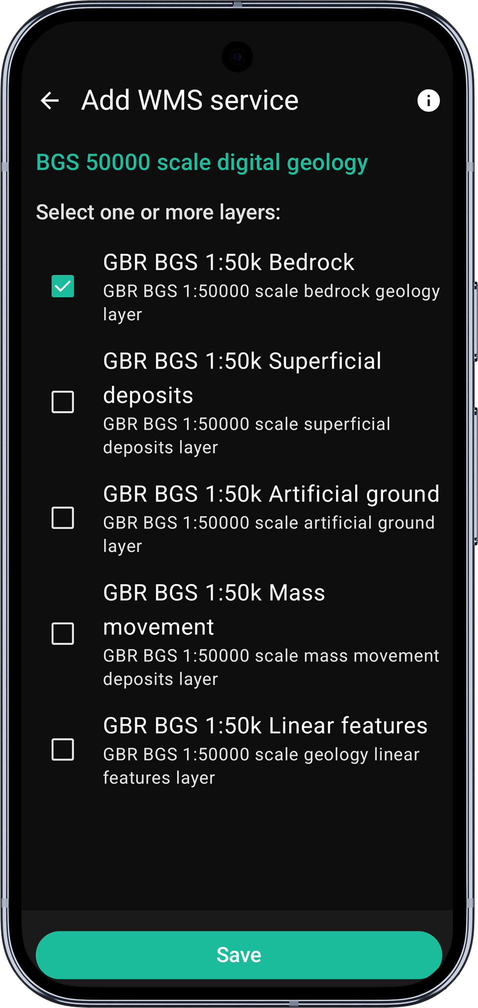 - Ensure the service is checked to enable its visibility on the map. If required, you can tap the service name to access and modify its configuration settings like transparency, drawing order, etc.